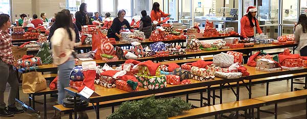 As I entered the cafetorium (a combination of cafeteria and auditorium) I saw a dozen or more folks loading hundreds of wrapped gifts onto tables. My local Y had collected what seemed like a gazillion gifts for others with their “Angel Tree”. It was Love in Action and