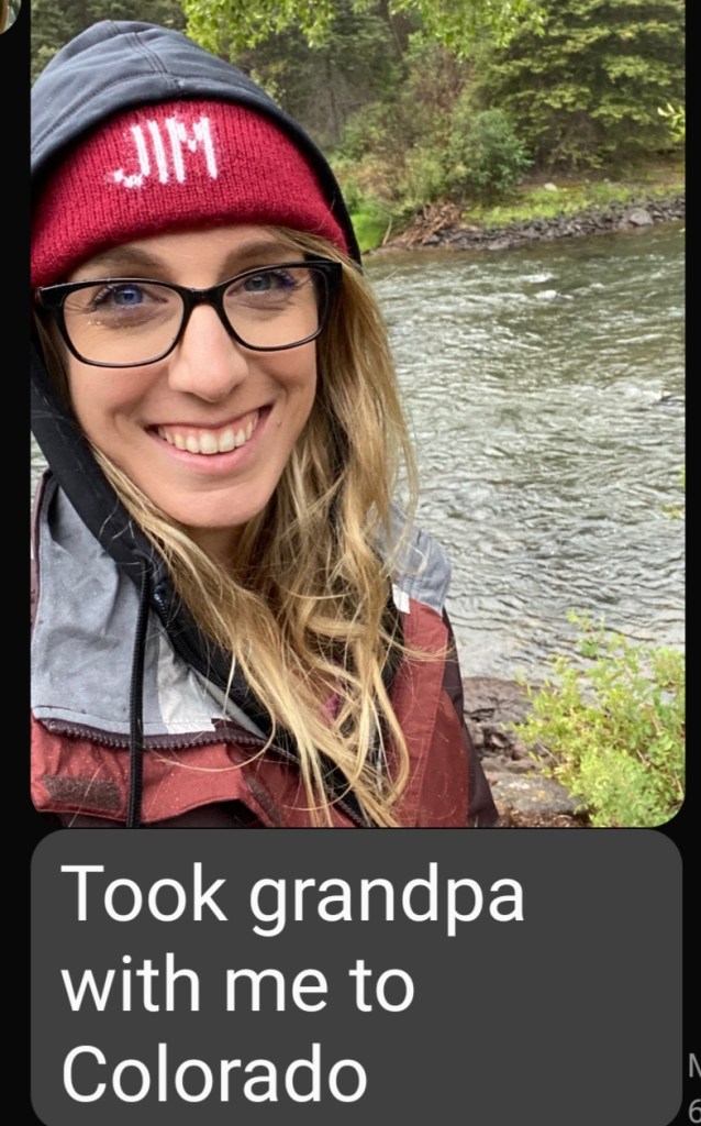 I am not convinced my littlest girl is my dad reincarnate, but I do catch his spirit in her at times. Sometimes when it is cold, she wears his old ski hat with his name Jim embroidered on it. She sent me a photo recently and warmed my heart.